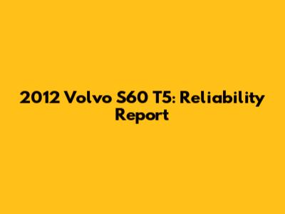 Diving Deep into the 2012 Volvo S60 T5 Reliability