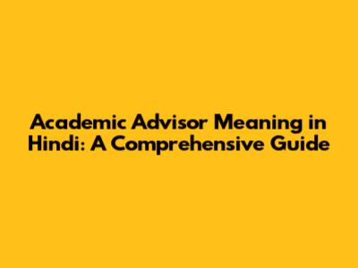 Academic Advisor Meaning In Hindi: A Comprehensive Guide