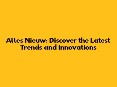 Alles Nieuw: Discover The Latest Trends And Innovations