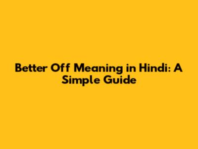 Better Off Meaning In Hindi: A Simple Guide