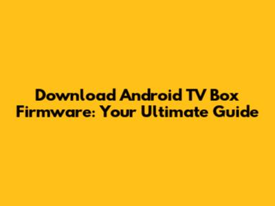 Download Android TV Box Firmware: Your Ultimate Guide