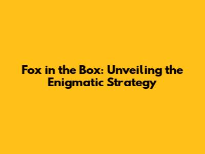 Fox In The Box: Unveiling The Enigmatic Strategy