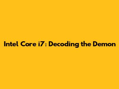 Intel Core i7: Decoding the Demon