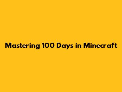 Mastering 100 Days In Minecraft
