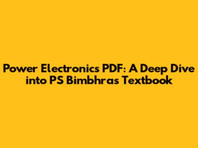 Why PS Bimbhra's Power Electronics PDF Matters