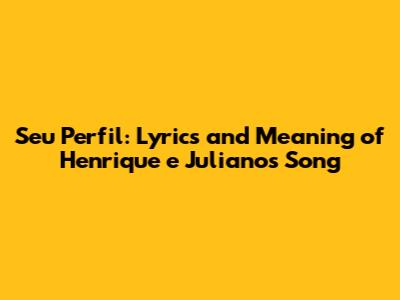 Seu Perfil: Lyrics And Meaning Of Henrique E Juliano's Song