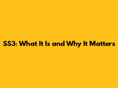 SS3: What It Is And Why It Matters