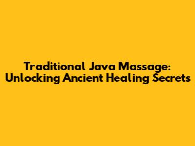 Traditional Java Massage: Ancient Healing Secrets